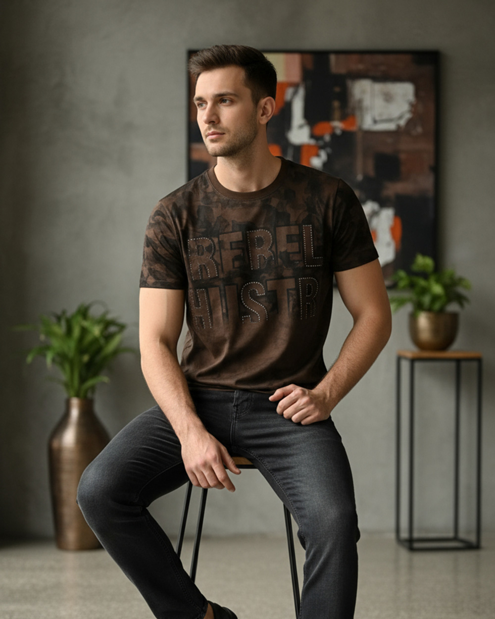 T-shirt featuring a velvet lace design is a unique and luxurious fusion of two contrasting textures. It combines the casual & comfortable.
