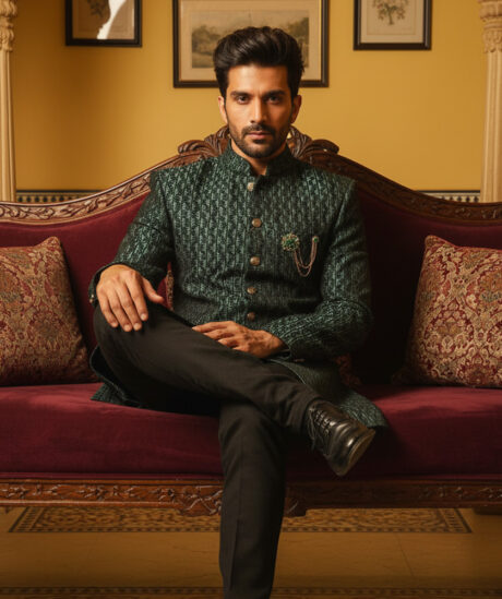 A style of fashion that blends traditional Indian elements with Western designs and silhouettes, featuring opulent embellishments like intricate embroidery, zardozi, sequins, or beads.