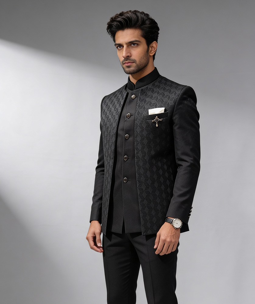A perfect blend of traditional Indian charm and modern Western tailoring, creating a sophisticated fusion that is both stylish and versatile.